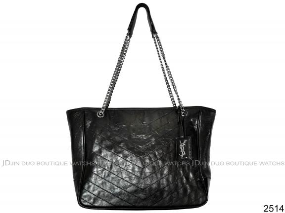 2514 YSL Niki黑色揉製復古褶皺小牛皮肩背購物包 |