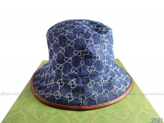 2521 經典雙G-LOGO藍色丹寧布M號漁夫帽 全新品 |