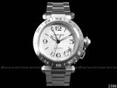 品 名:2386 PASHA銀白色面盤GMT二地時間中型款自動上鍊女用腕錶