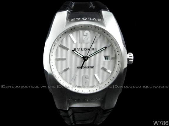 【品名】 | BVLGARI 寶格麗 Ergon 自動上鍊男用腕錶 | 【型號】 | EG40SCH | 【新錶價】 | 167000元 | 【特價】 | 58800元 | 【機芯】 | 自動上鍊機芯 | 【品相】 | 95%成新 附-盒/單 | 【材質】 | 精鋼材質錶殼&摺疊錶扣/原廠黑色鱷魚皮錶帶/藍寶石水晶鏡面/精鋼螢光指針 | 【功能】 | 時針.分針二針時刻顯示/三點鐘位置日期窗顯示/銀白色直條紋面盤/6.12立體阿拉伯數字整點時標/按壓式錶冠/防水30米/錶徑:寬40mm*厚10mm |