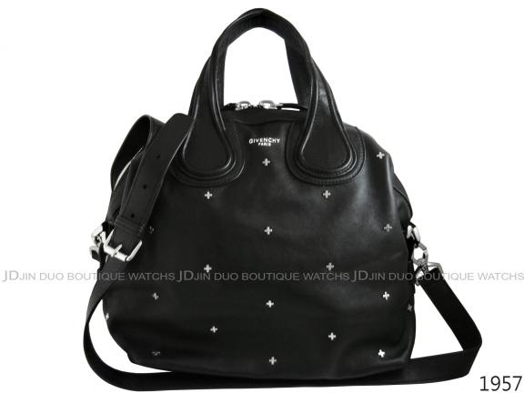 | GIVENCHY 紀梵希 1957 NIGHTINGALE黑色小羊皮十字花鉚釘手提側肩背包 |