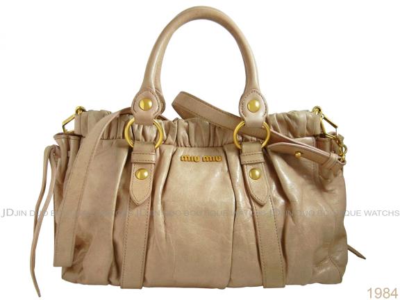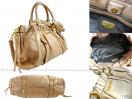 【品名】 | MIU MIU 粉膚色仿舊牛皮皺摺款手提側肩背包 | 【型號】 |