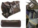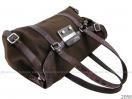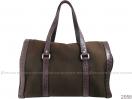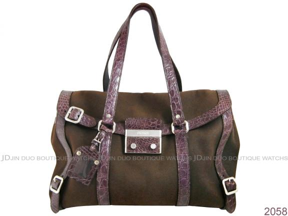 2058 棕色帆布紫鱷魚皮包邊垂蓋式手提肩背包 |