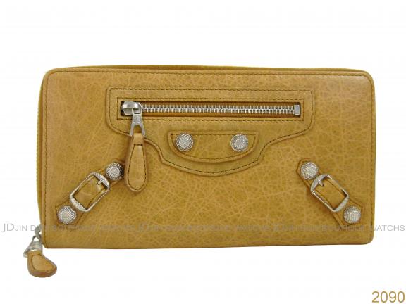 | BALENCIAGA 巴黎世家 2090 駝色仿舊羊皮銀釦拉鍊長夾 全新品 |