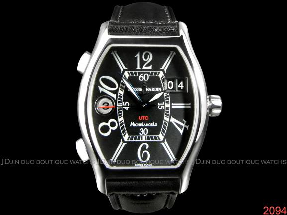 【品名】 | Ulysse Nardin 雅典 Michelangelo UTC(世界協調時間 ) 兩地時區 自動上鍊男用腕錶 | 【型號】 | 223-48 | 【新錶價】 | 170000元 | 【特價】 | 63800元 | 【機芯】 | 自動上鍊機芯 | 【品相】 | 95%成新 無-附件 *非原廠皮革錶帶* | 【材質】 | 酒桶形精鋼材質錶殼與錶扣/非原廠黑色小牛皮錶帶/黑色面盤/藍鋼螢光指針/藍寶石水晶鏡面 | 【功能】 | 時針.分針.秒針三針時刻顯示/旋入式錶冠/2點鐘位置大日期窗顯示/9點鐘位置第二時區顯示/錶殼8點鐘與10點鐘位置設有加減第二時區按鈕/圓弧型後底蓋以四顆螺絲固定/防水功能50米/錶徑:34mm(寬)不含錶冠*38mm(高)不含錶耳*厚:12mm |