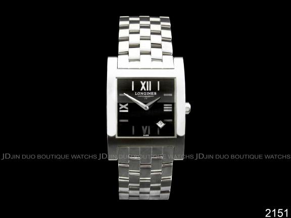 【品名】 | LONGINES 浪琴 DolceVita黛綽維納系列石英女用腕錶 | 【型號】 | L5.503.4 | 【新錶價】 | 約30000元 | 【特價】 | 12800元 | 【機芯】 | 石英機芯 | 【品相】 | 90%成新 無-附件 | 【材質】 | 精鋼材質錶殼&錶扣&鍊帶&指針/幾何長格紋黑色面盤/藍寶石水晶鏡面 | 【功能】 | 時針.分針二針時刻顯示/4~5點鐘位置日期窗顯示/日常生活防水30米/立體羅馬數字整點時標/按壓式錶冠/錶徑:24.5mm(不含錶冠)*33mm(含錶耳)*厚8mm |