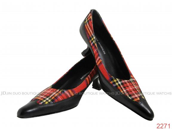 | ENZO ANGIOLINI ENZO ANGIOLINI 2271 蘇格蘭格紋織布黑色小牛皮尖頭中跟女鞋 |