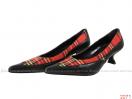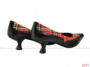 2271 蘇格蘭格紋織布黑色小牛皮尖頭中跟女鞋 |