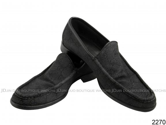 2270 黑灰色緹花布面雙G-LOGO休閒女鞋樂福鞋 |