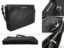 [品名] MICHAEL KORS MK JJET SET TRAVEL 黑色皮革紋三層式手拿側肩背小方包