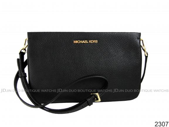 2307 MK黑色皮革紋三層式手拿側肩背小方包 全新品 |