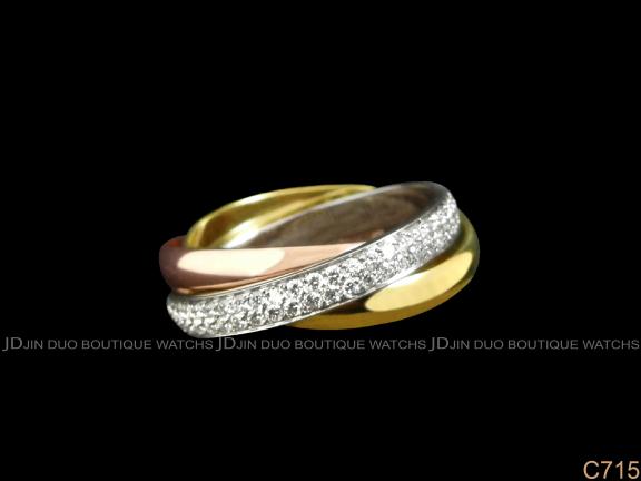 C715 TRINITY系列經典三環三色金52號鑲鑽戒指 |