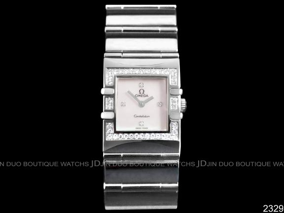 | OMEGA 歐米茄 2329 constellation星座系列 方形鋼帶珍珠母貝款石英女用鑽錶 |