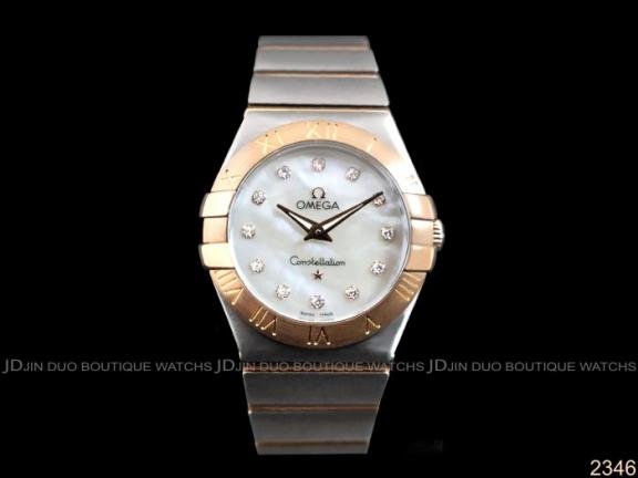 | OMEGA 歐米茄 2346 constellation星座系列18K玫瑰金珍珠母貝面27mm石英女用鑽錶 |