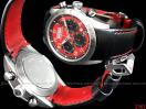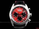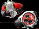 [材質] 精鋼材質錶殼&摺疊錶扣/黑色皮革錶帶與黑紅織紋錶帶/抗磨損藍寶石水晶鏡面/紅色黑條紋面盤/螢光整點時標與指針
