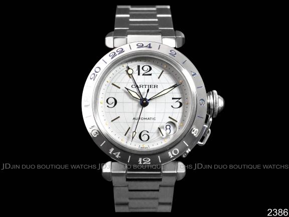 | CARTIER 卡地亞 2386 PASHA銀白色面盤GMT二地時間中型款自動上鍊女用腕錶 |