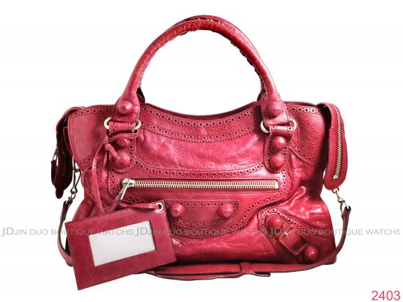 | BALENCIAGA 巴黎世家 2403 CITY酒紅色小羊皮蕾絲款手提肩背機車包 |