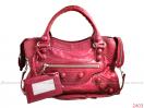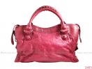 [品名] BALENCIAGA巴黎世家CITY酒紅色小羊皮蕾絲款手提肩背機車包