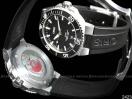 [材質] 精鋼材質錶殼與錶扣/黑色橡膠錶帶/藍寶石水晶鏡面/黑色面盤/黑色陶瓷錶圈/螢光指針與整點時標