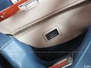 藍色Nappa牛皮袋身與肩背帶/黑色麂皮與米色小牛皮襯裡/拋光銀色金屬與橘色鋁條配飾