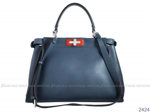 [品名] FENDI芬迪Peekaboo躲貓貓藍色NAPPA牛皮中型款手提側肩背包