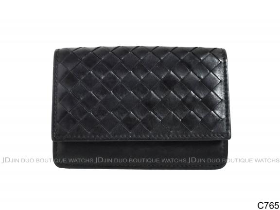 C765 BV經典編織黑色小羊皮卡夾名片夾 |
