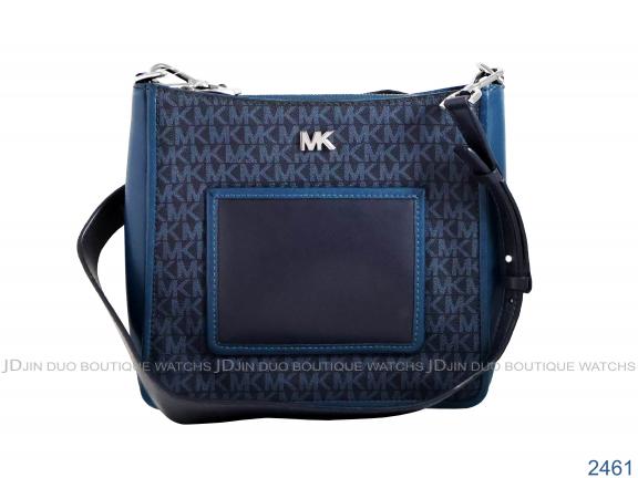 | MICHAEL KORS MICHAEL KORS 2461 GLORIA MK-LOGO字紋藍黑色PVC側肩背方包 全新品 |