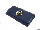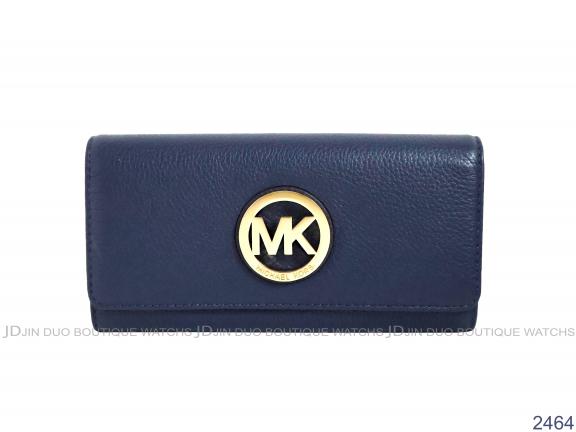 2464 MK深藍色皮革紋金屬LOGO掀蓋長夾 全新品 |