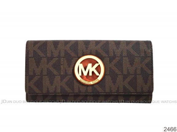 2466 MK深咖啡色字紋PVC金屬LOGO掀蓋長夾 全新品 |