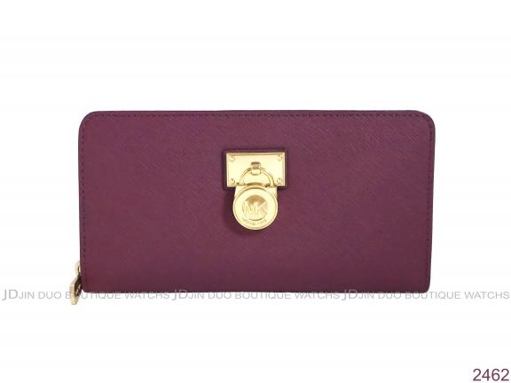 2462 MK莓紅色防刮皮紋金鎖頭拉鍊長夾 全新品 |