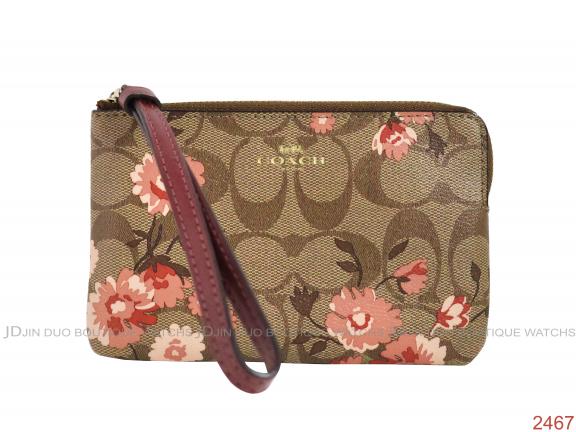 | COACH 蔻馳 2467 卡其色PVC經典C-LOGO花朵圖紋小手拿包 全新品 |