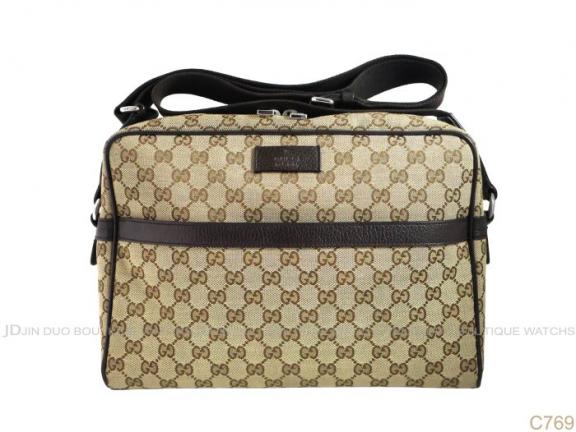 C769 雙G-LOGO駝色緹花布側肩背包 |