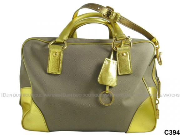 C394 家徽LOGO駝色緹花織布特殊金色背帶波士頓手提肩背包 |