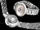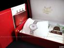 [材質] 精鋼鍍18白K金材質錶殼與錶帶/藍寶石水晶鏡面/粉紅色珍珠母貝面盤/錶框精鑲119顆錶帶精鑲28顆施華洛世奇八心八箭CZ/錶面山茶花精鑲52顆施華洛世奇八心八箭CZ/12點鐘精鑲南非真鑽0.0044ct