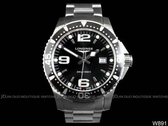 | LONGINES 浪琴 W891 深海征服者39mm黑色面盤石英男用潛水腕錶 |