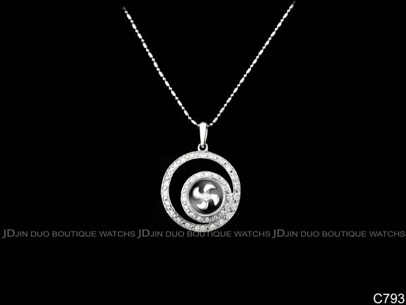 C793 天然鑽石同心圓時運轉動造型18白K金鑽石項鍊 |